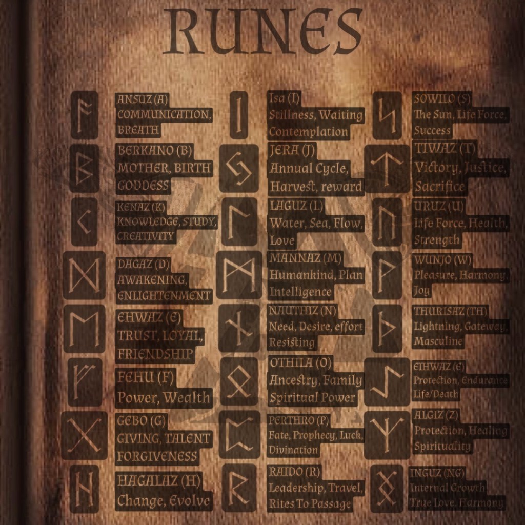 Runes were said to had come from the roots or Yggdrasil, the tree of, from the well of urd. Runes were more than just a regular alphabet system each rune had an in-depth meaning behind each one bringing supernatural powers and energies. Odin sacrificed himself by hanging himself on Yggdrasil for 9 days and 9 nights and then lastly impaling himself with gunginir(Odin’s spear). He did all of this for one reason, to learn the meanings behind the runes, bringing him wisdom and power. One learning and understanding these runes may bring him/hermore awareness or growth as an individual.